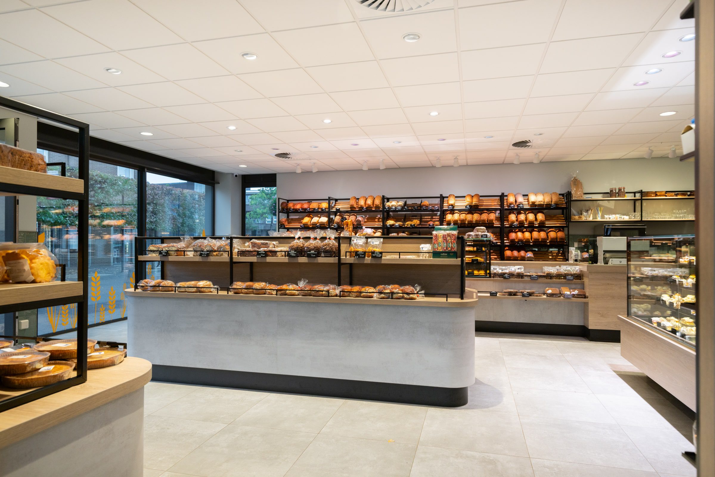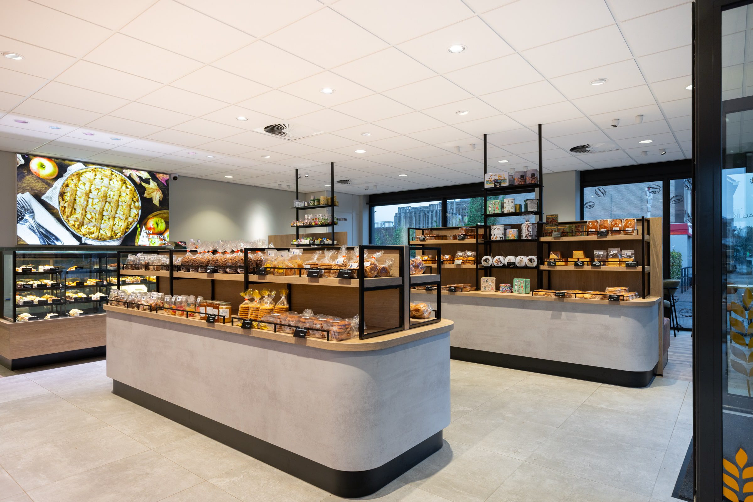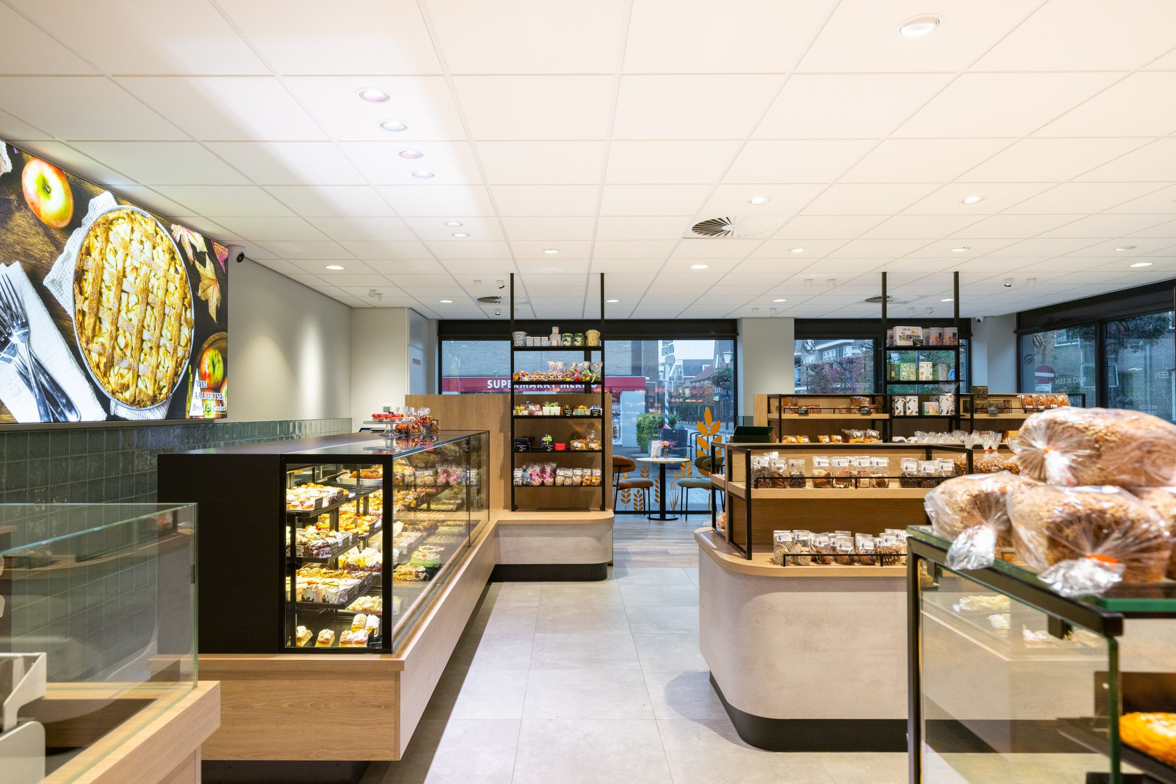 Het ontwerp combineert functionaliteit met een uitnodigende sfeer, zodat klanten kunnen genieten van een optimale winkelervaring en het bakkerscafé een fijne plek biedt voor een moment van ontspanning.