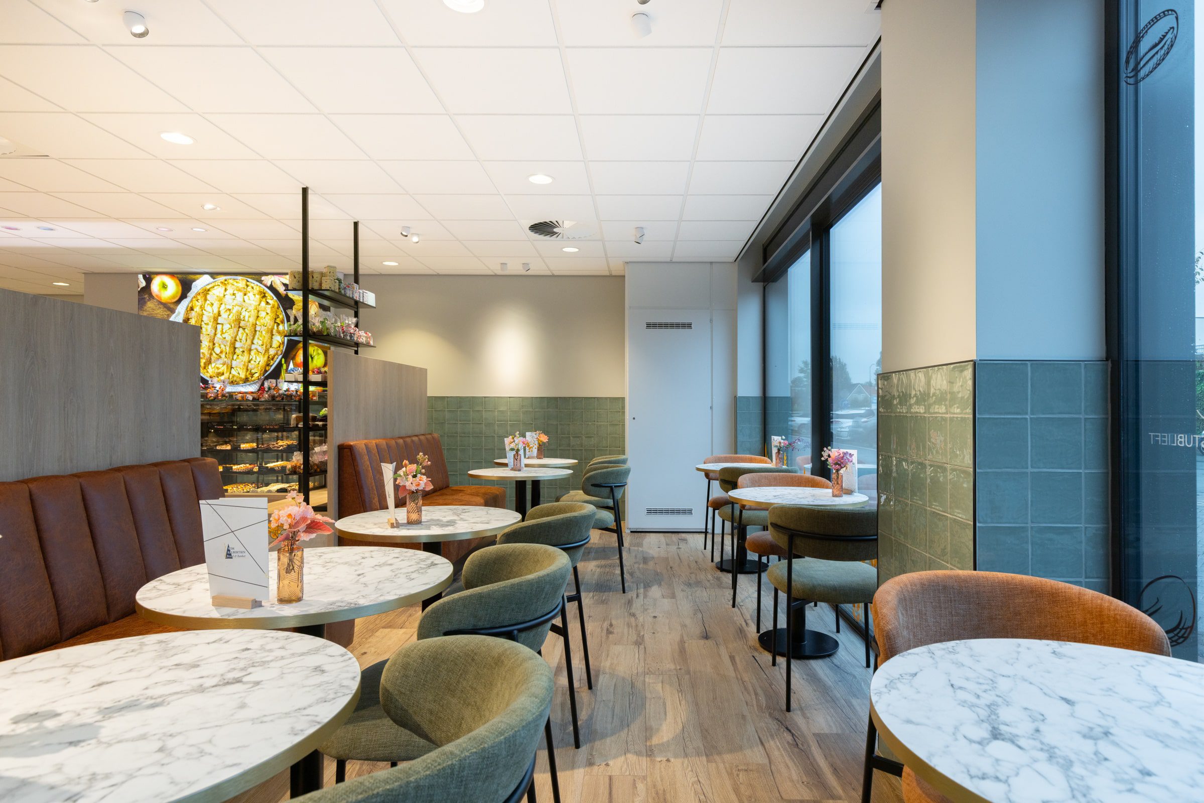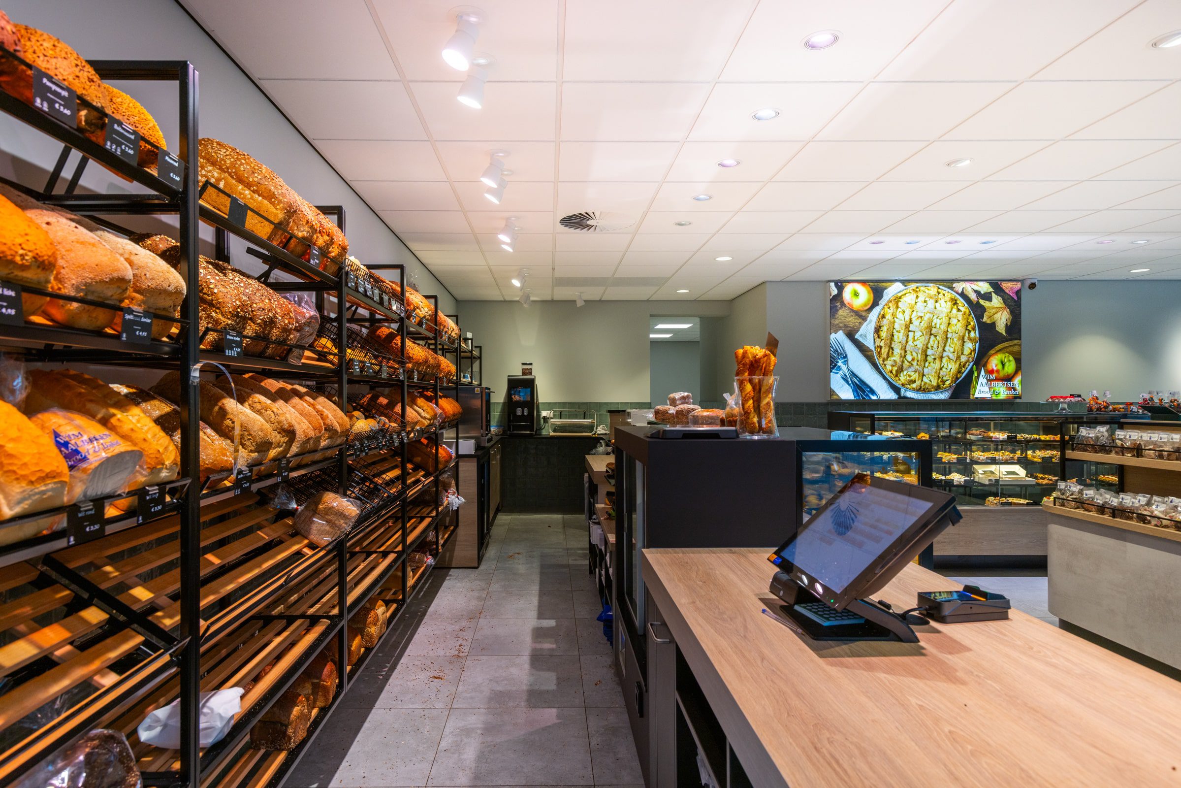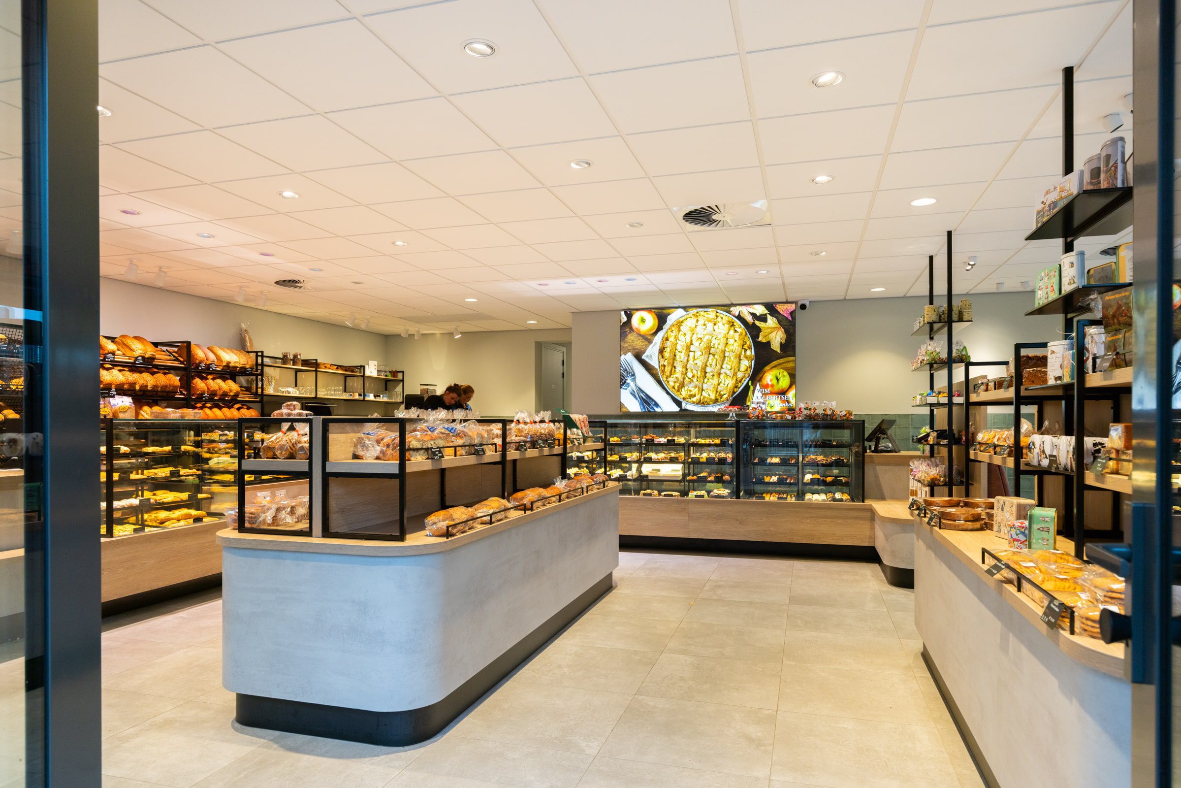 Het ontwerp combineert functionaliteit met een uitnodigende sfeer, zodat klanten kunnen genieten van een optimale winkelervaring en het bakkerscafé een fijne plek biedt voor een moment van ontspanning.