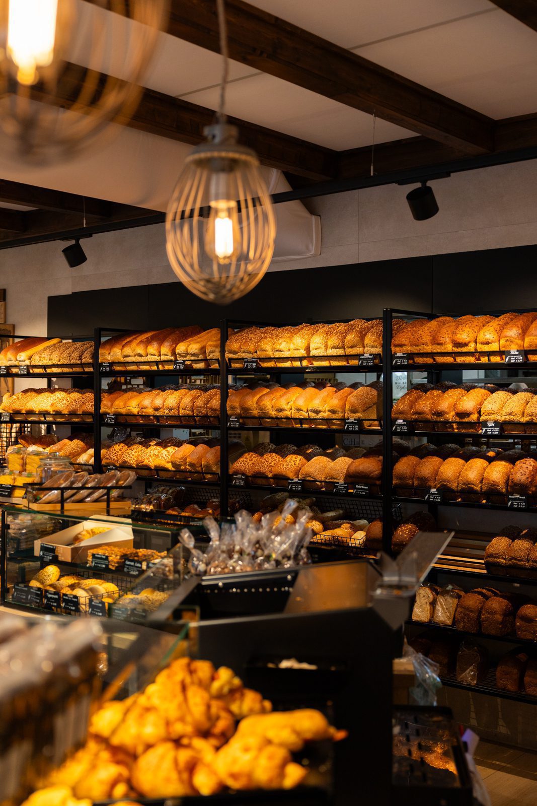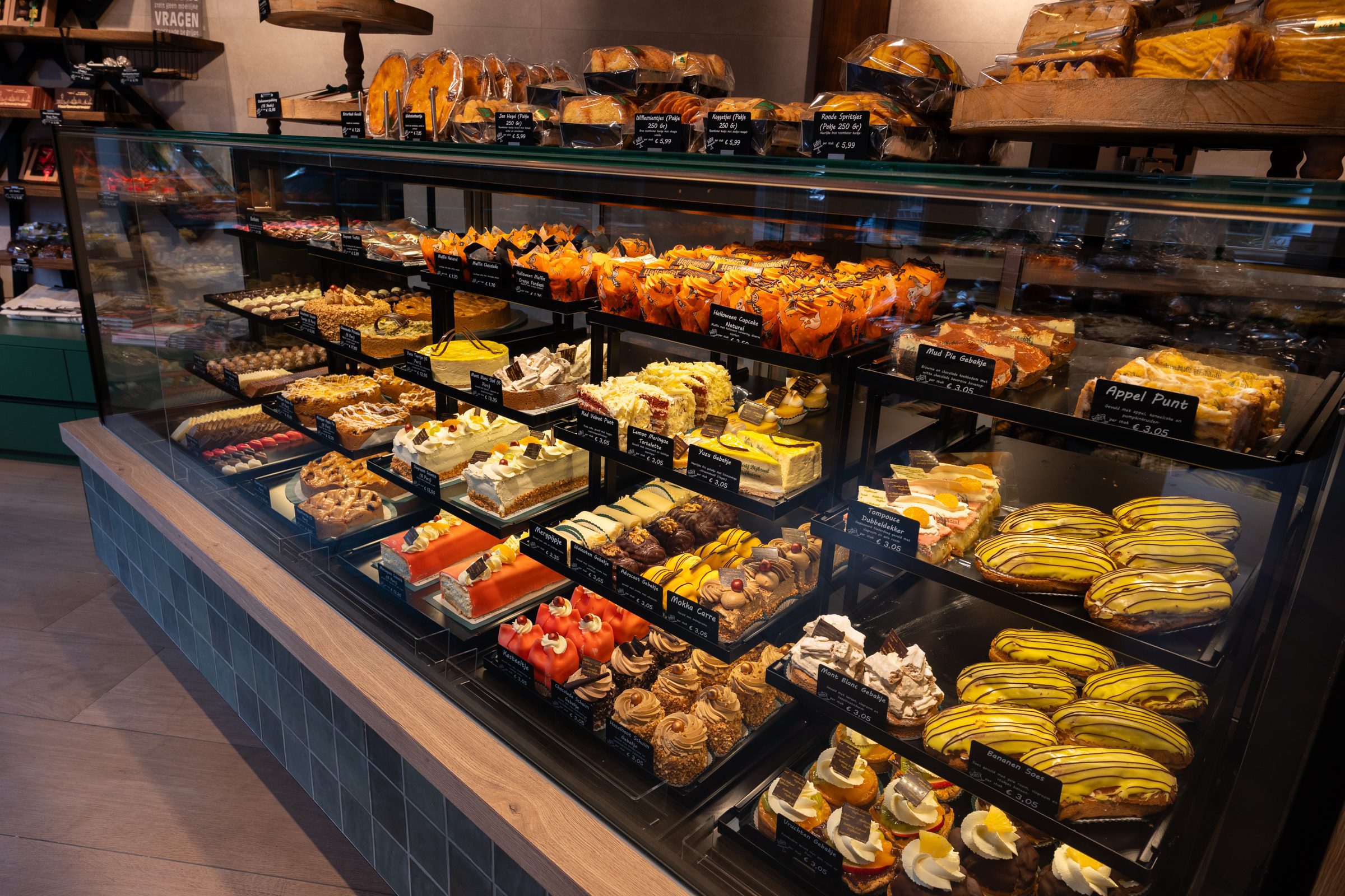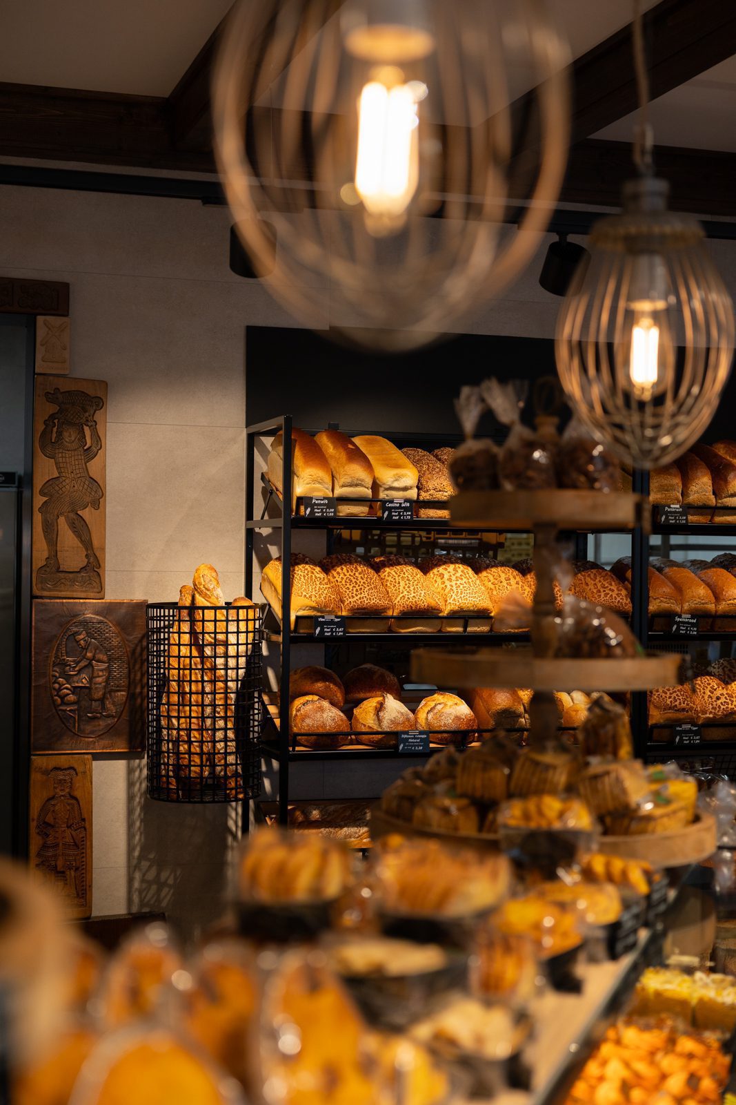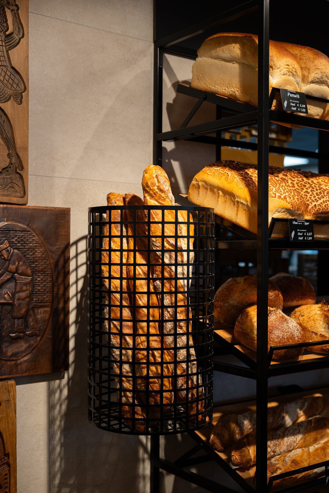 De zware, traditionele winkeldeur is vervangen door twee soepel lopende halve deuren, en een doorkijkje naar de inpakruimte geeft klanten een blik achter de schermen. Dankzij het ontwerp van Martine Amama Interieurstyling en de uitvoering door Emondt is de winkel nu zowel modern als functioneel, met behoud van het karakter en de gezelligheid van de ambachtelijke dorpsbakkerij.
