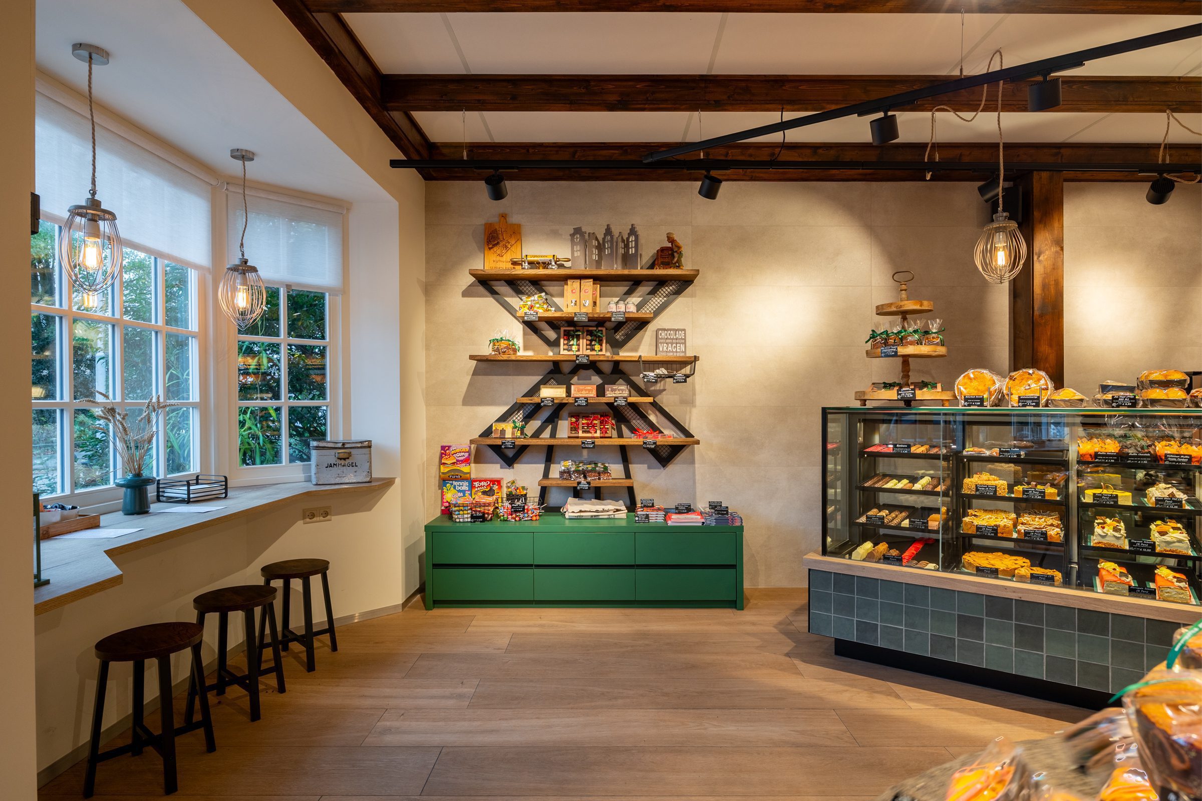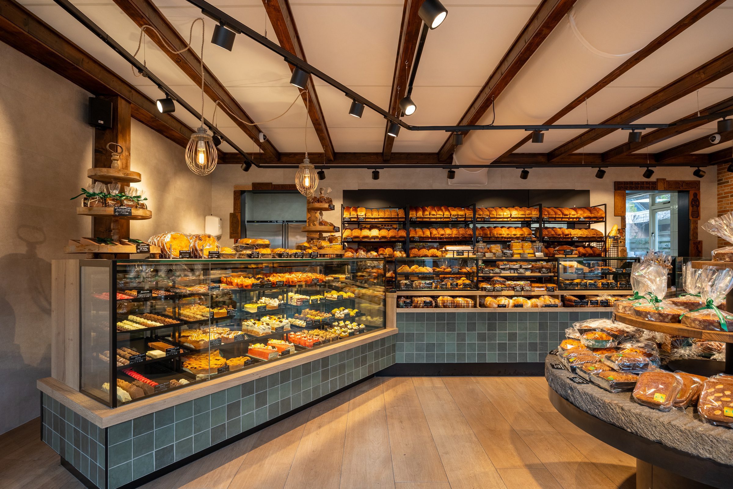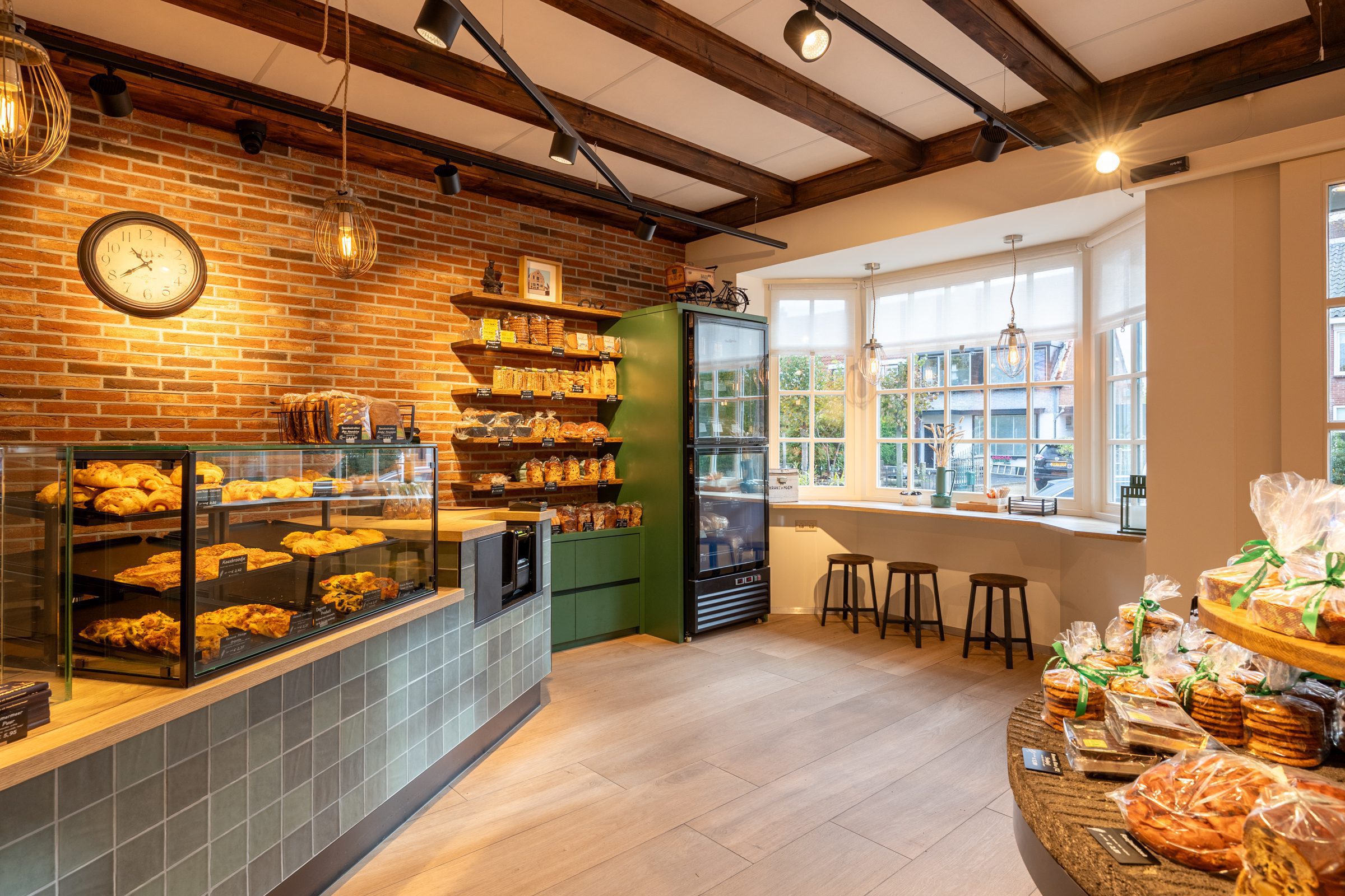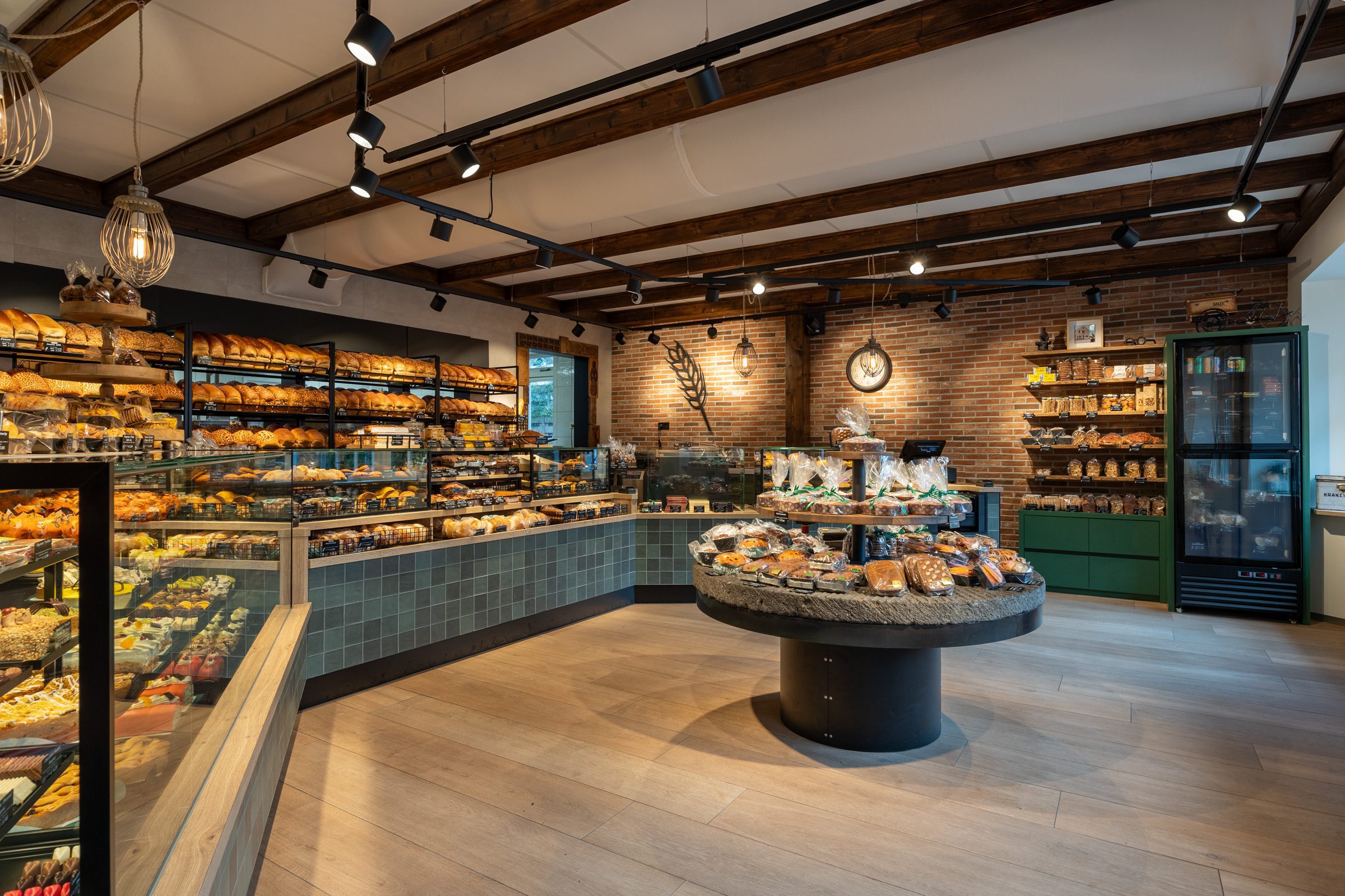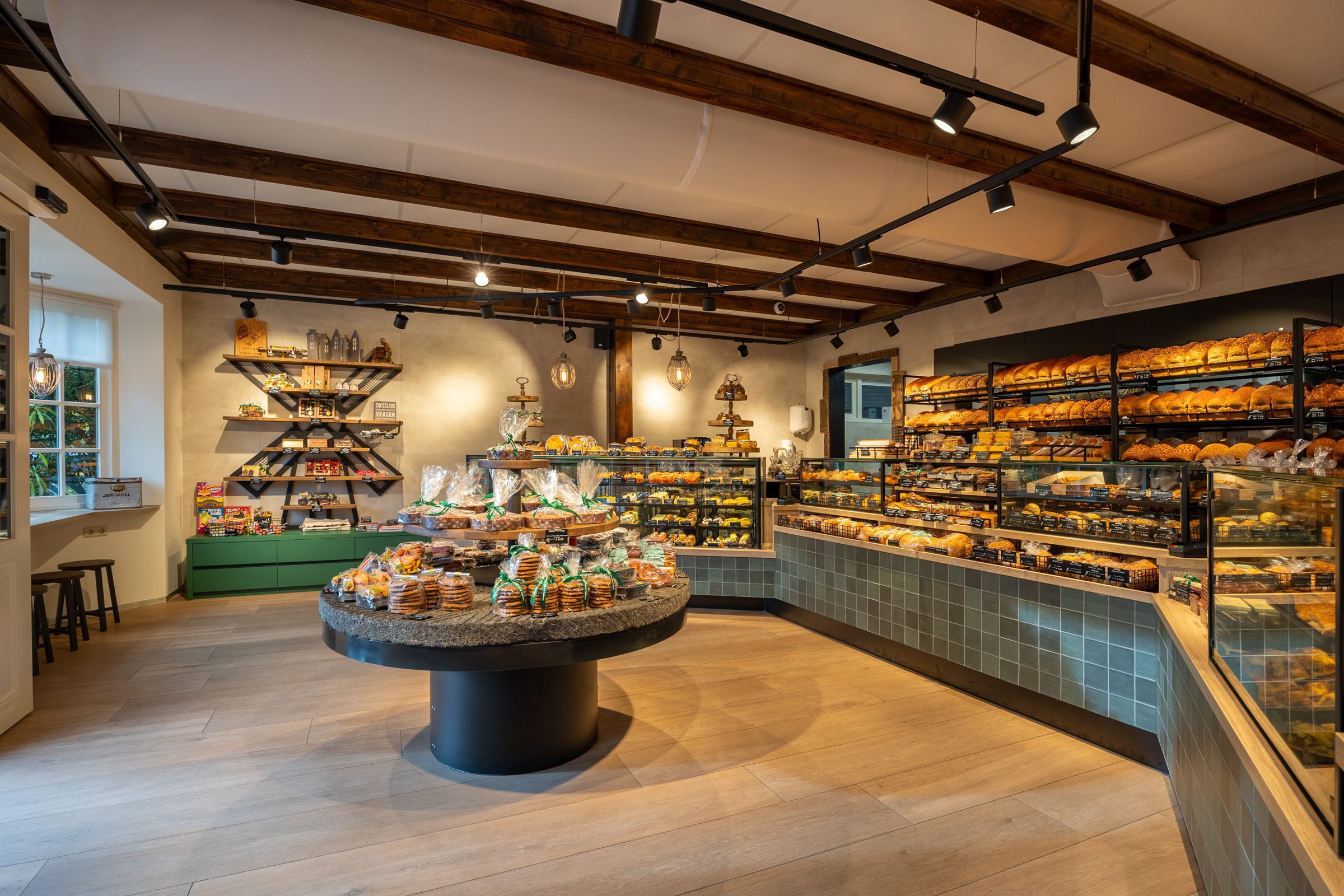 Emondt heeft Bakkerij Dijkzeulen in Vijfhuizen volledig vernieuwd, waarbij de warme, gezellige sfeer van de dorpswinkel behouden bleef.