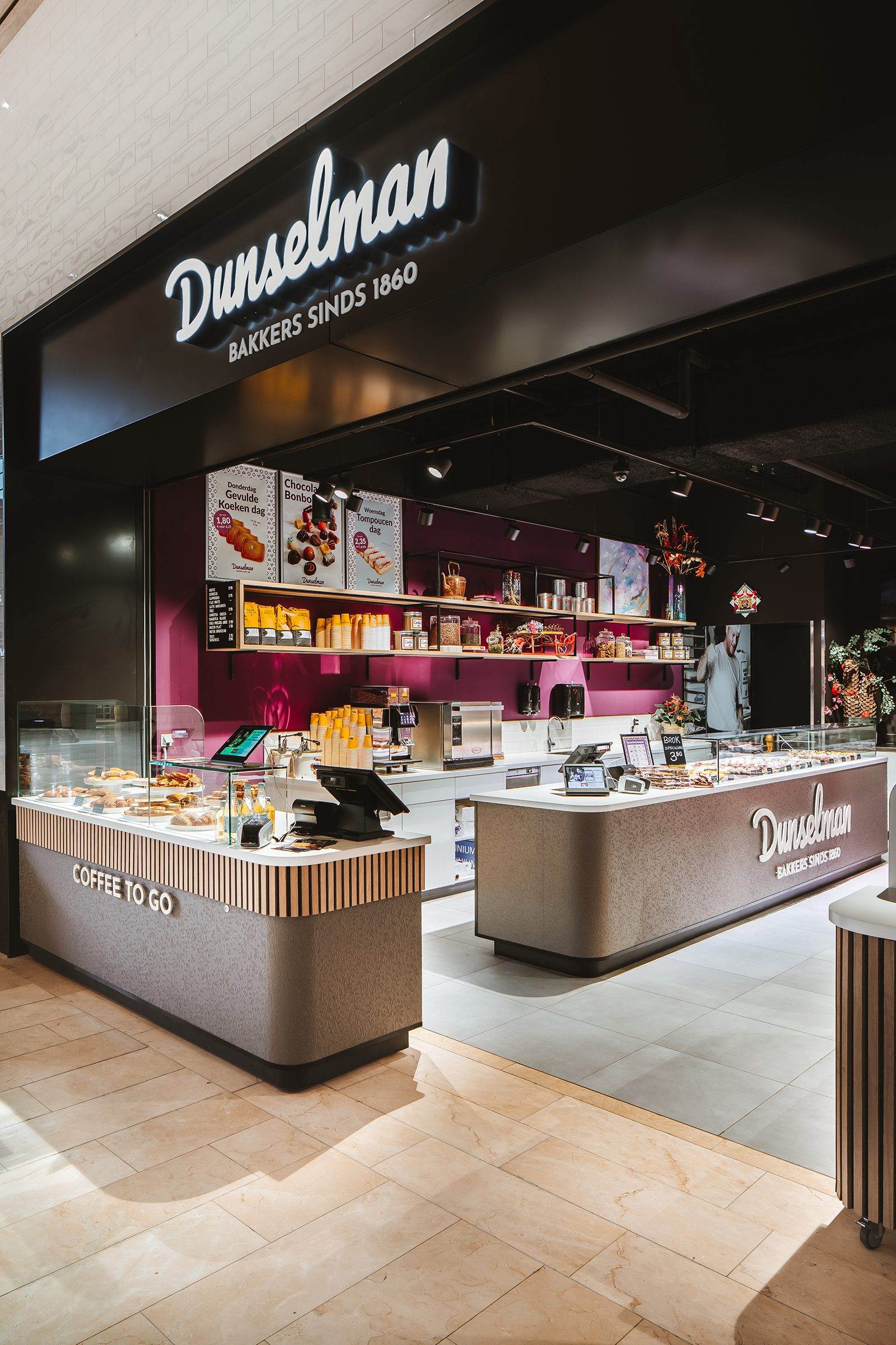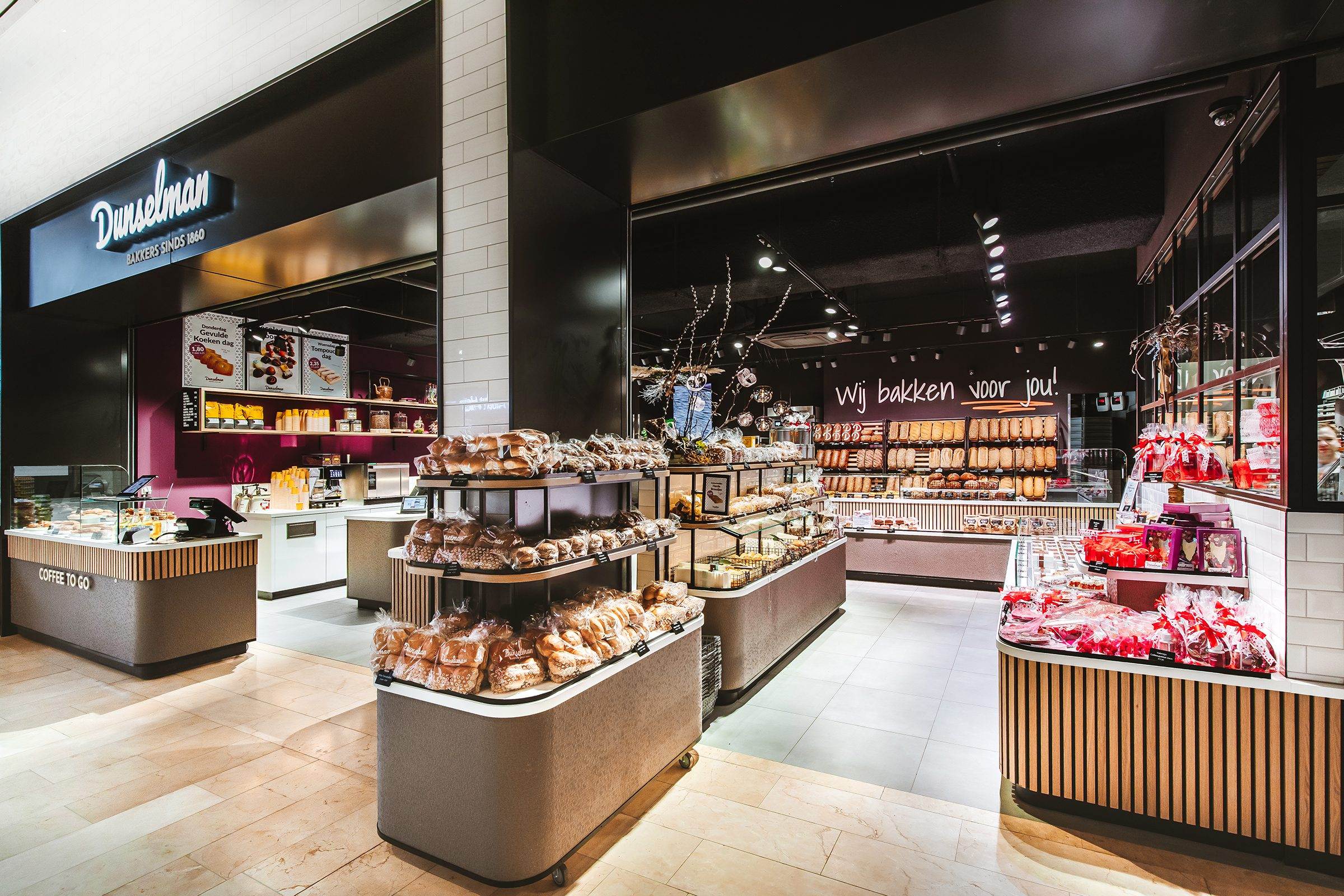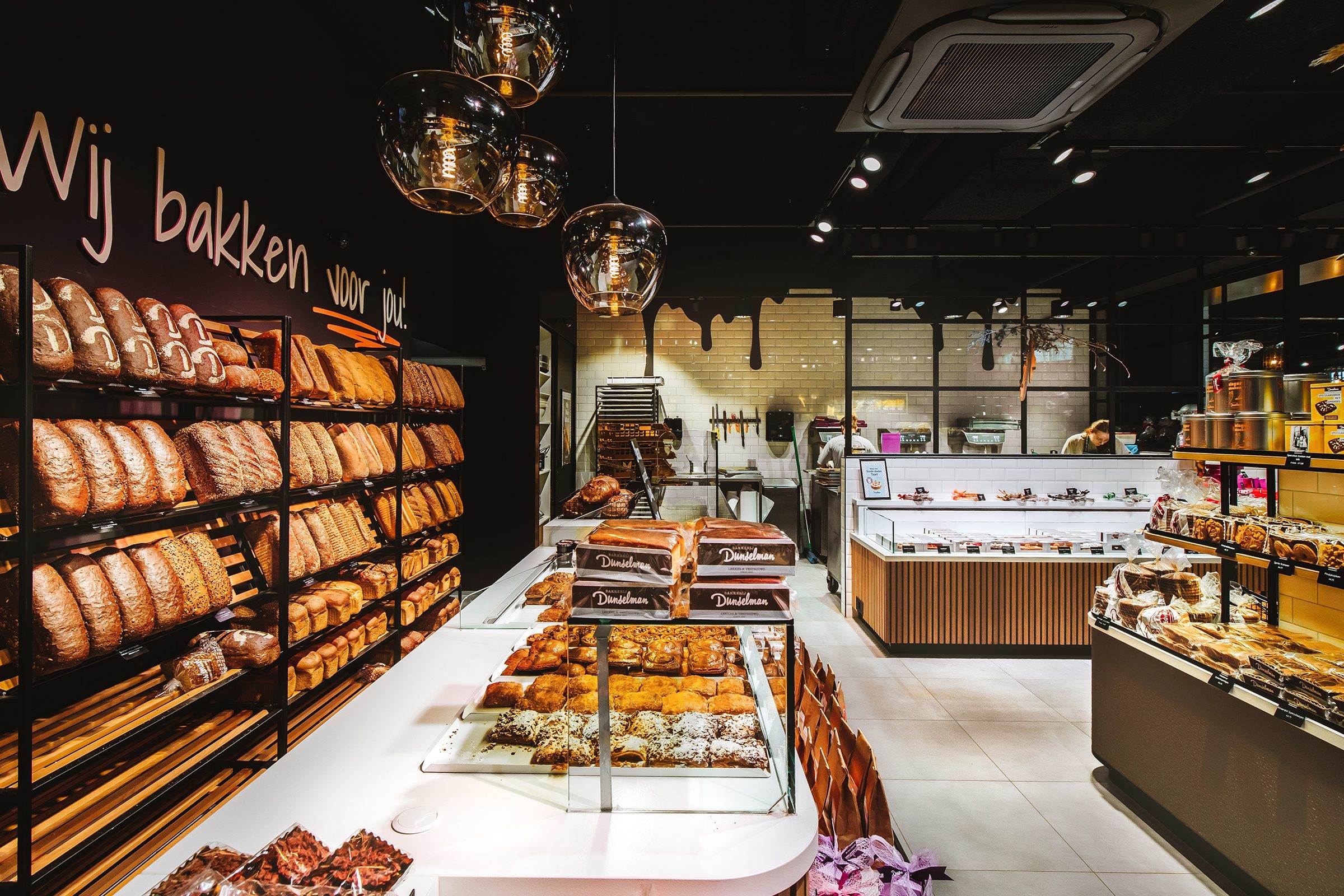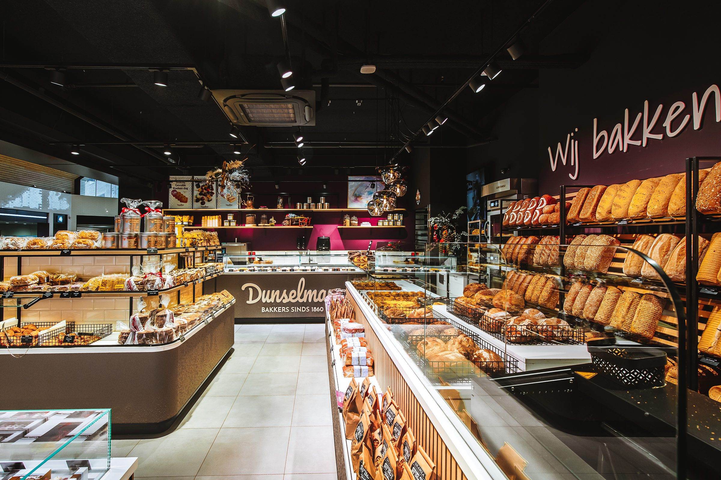 Bakkerij Dunselman vormt een prachtige aanwinst op het versplein van winkelcentrum Makado in Schagen. Wij hebben deze winkel ontworpen én gerealiseerd en het is niet alleen een lust voor het oog, maar ook een ware beleving voor de zintuigen.
