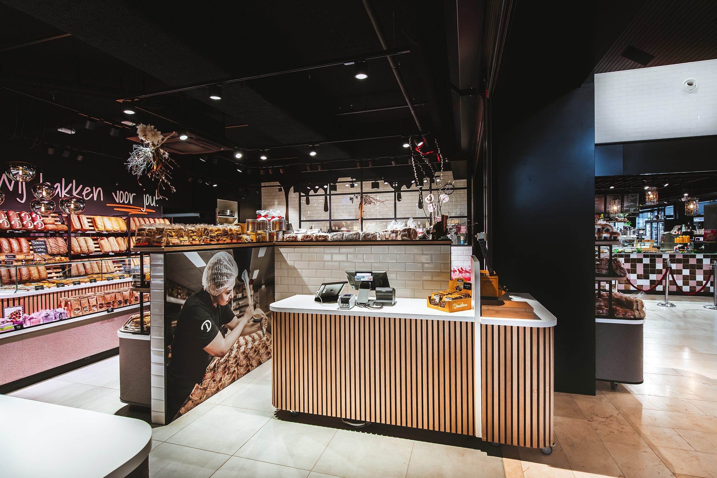 Bij binnenkomst wordt men direct verwelkomd door een uitnodigende sfeer, waarin diverse toonbanken uitnodigend staan te pronken. Maar dat is niet alles; de toevoeging van een gezellige koffiecorner, een smaakvolle gebaksvitrine en een praktisch verrijdbaar entreemeubel met een scala aan ontbijtproducten maken de winkel compleet.