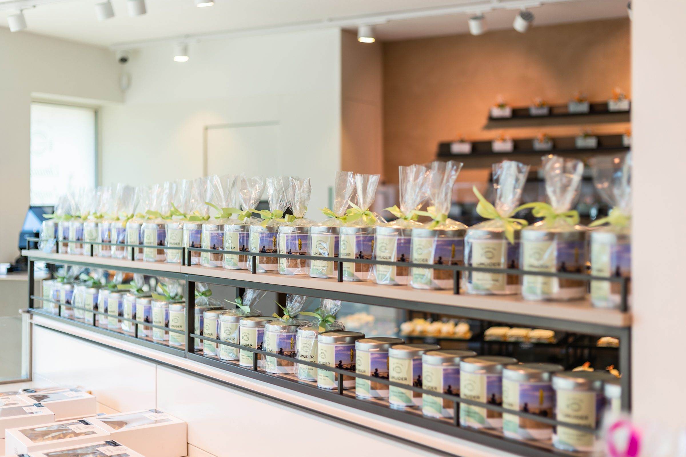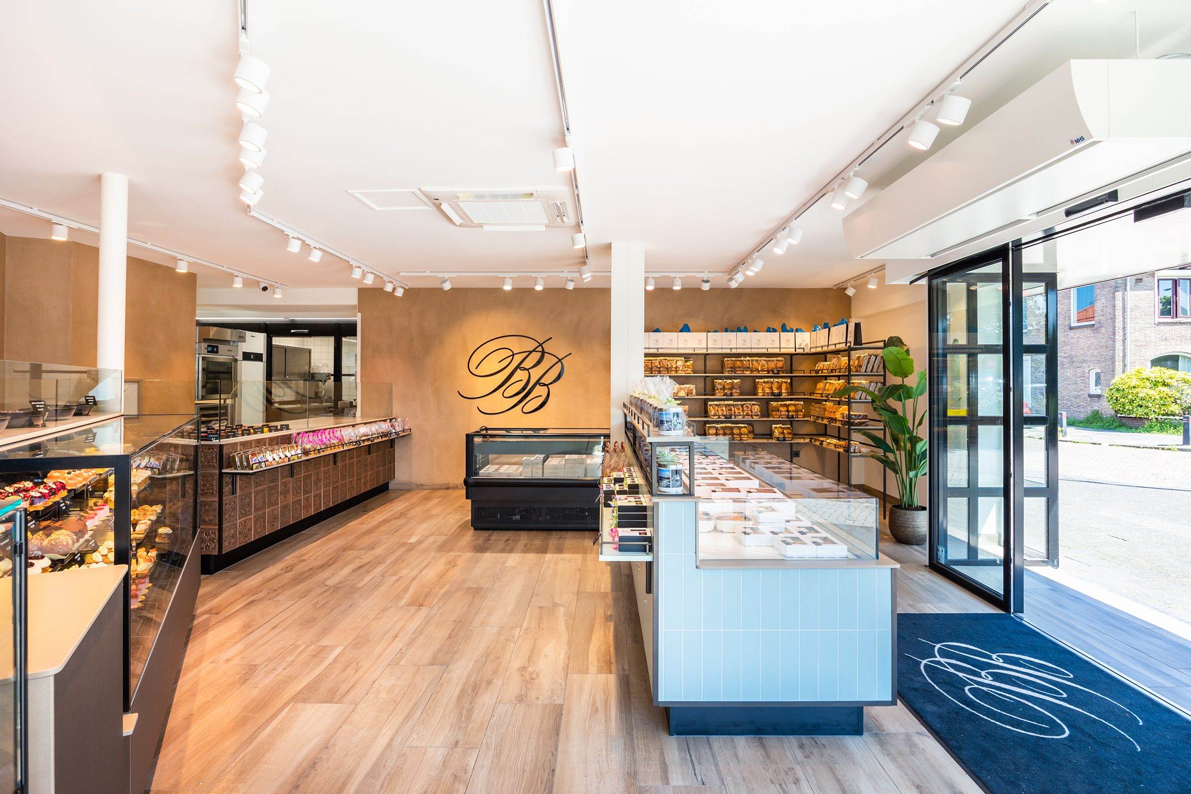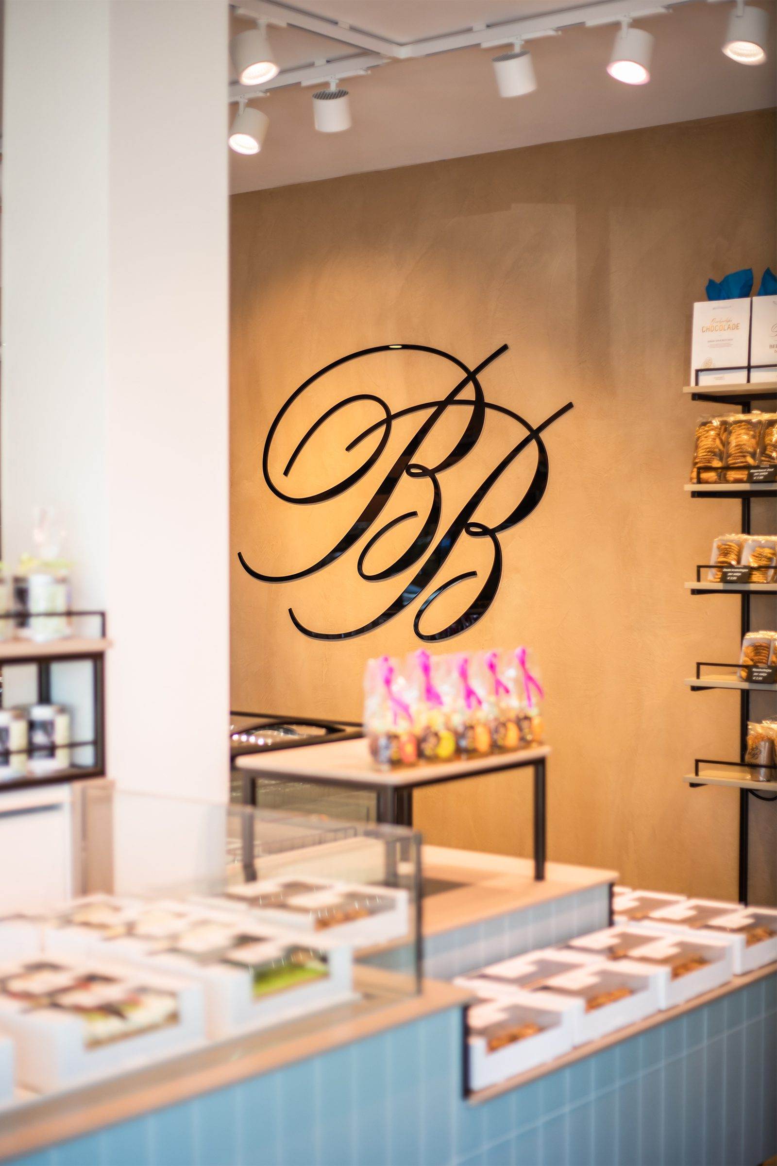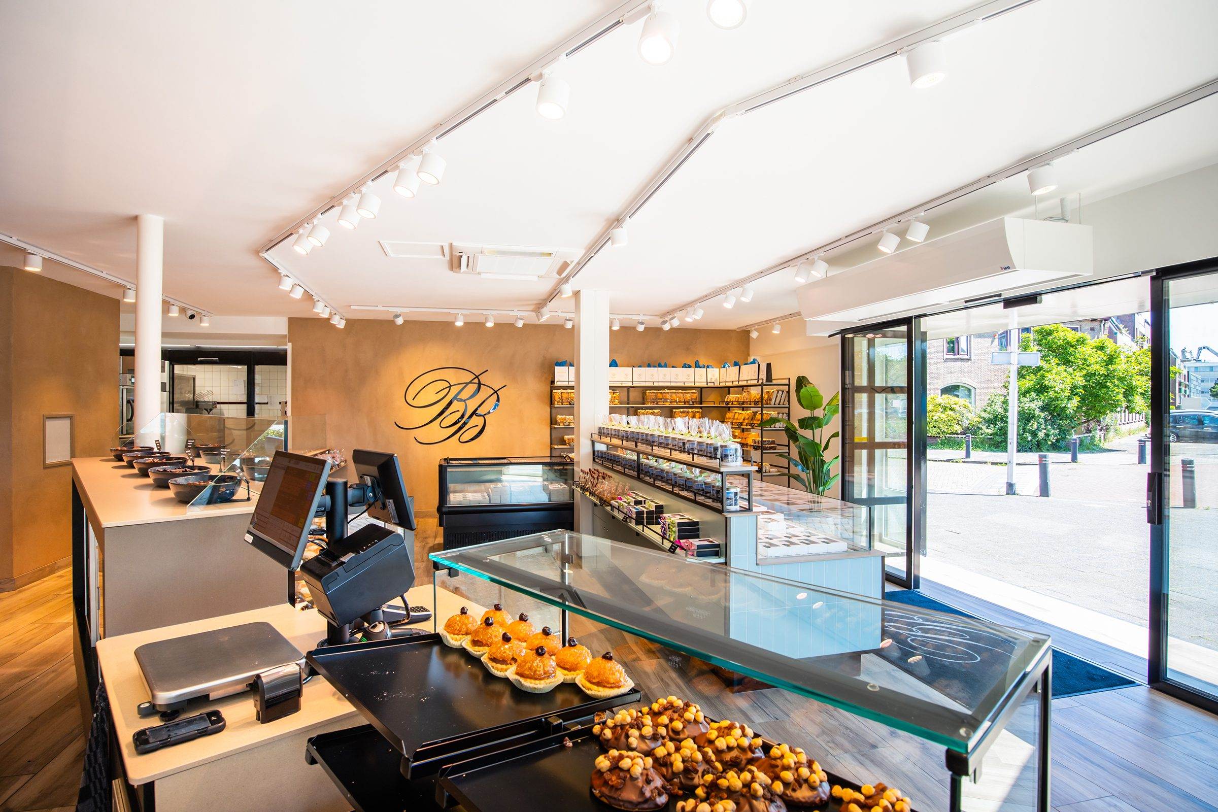 Bij binnenkomst wordt de klant direct naar het koeleiland geleid, om vervolgens langs de zelfbedieningswand, bonbonpresentatie en gebaksvitrine naar de kassa te lopen. Deze route is ontworpen om de winkelervaring efficiënt en prettig te maken.