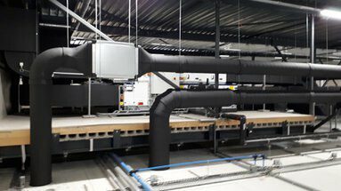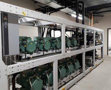 Emondt Koeltechniek took care of the complete refrigeration installation at Bakkerij Nollen in Hengevelde, consisting of: Central CO2 refrigeration and freezing plant Emergency ventilation and detection system 4 pcs 10 hatch covers, incl. regulation Evaporators freezer, incl. regulation Shock freezer, incl. Emondt PLC control Refrigeration units, incl. regulation Floor heating freezer cell and freezing tunnel Piping and insulation for CO2 section AHU with space cooling dry pastry AHU with space cooling wet pastry Airsocks all room coolers Air conditioning offices Piping and insulation (cold carriers) Ventilation office and canteen 4 air curtains for freezer doors