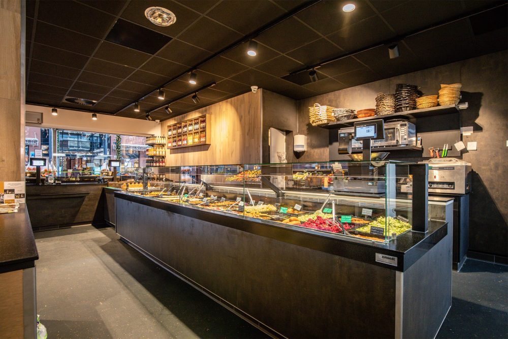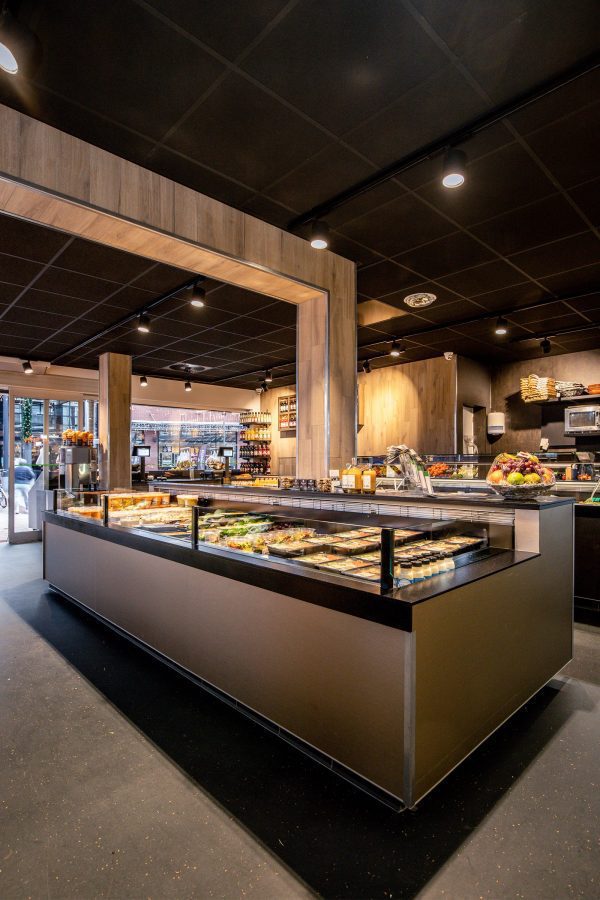surrounded by natural materials such as wood and a wall panel of moss which ensures an optimal customer experience.