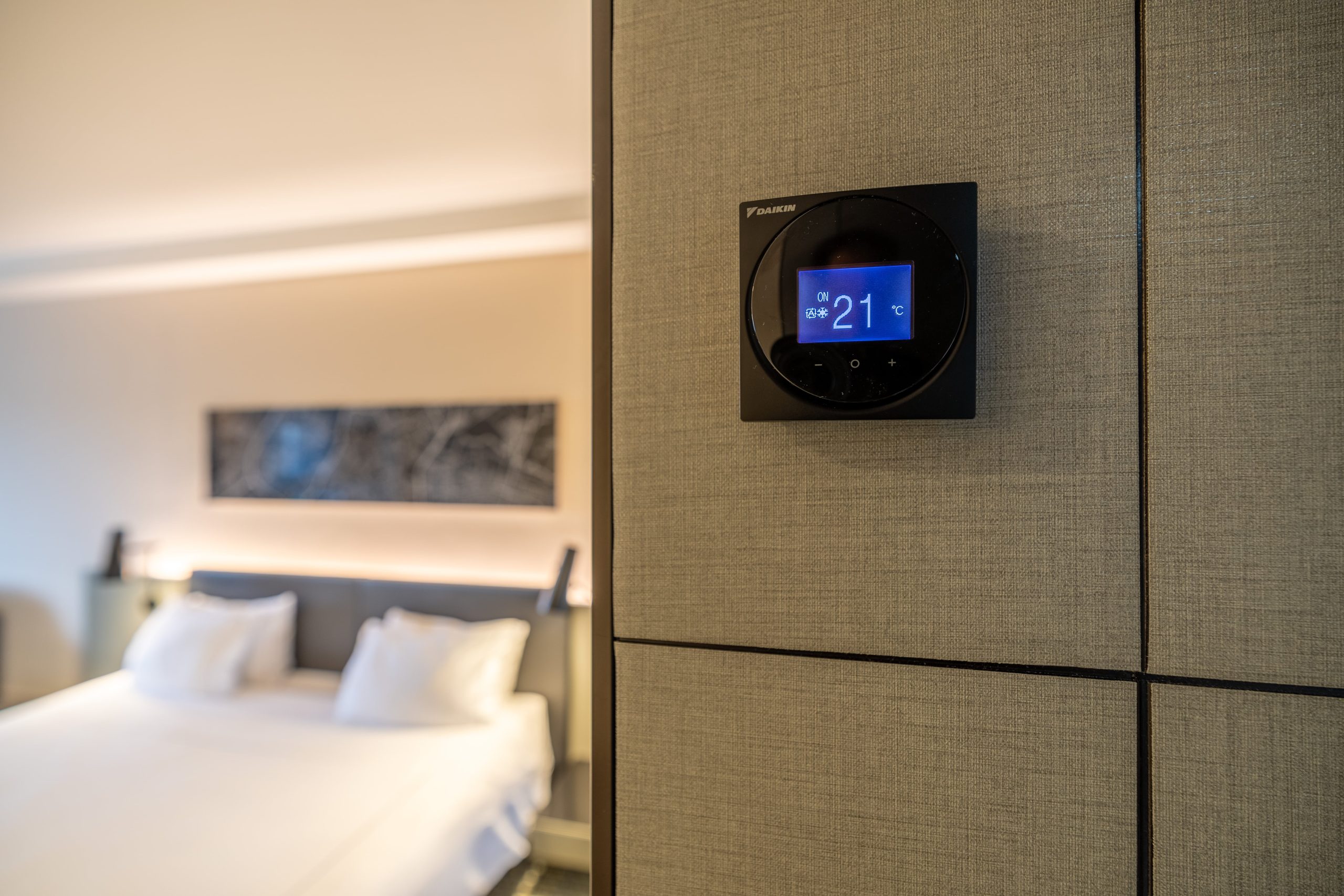 Het VRV 5 Warmteterugwinningssysteem van Daikin bleek de ideale oplossing. Deze technologie biedt gasten de mogelijkheid om per kamer de temperatuur nauwkeurig te regelen en benut overtollige warmte om andere ruimtes te verwarmen, wat resulteert in lagere energiekosten. Het systeem maakt gebruik van R32-koudemiddel met een 71% lagere milieu-impact dan de gebruikelijke R-410A, en is eenvoudig te recyclen. Dankzij de Shirudo-technologie kon de installatie vlot verlopen binnen de gestelde termijn, zonder afbreuk te doen aan de historische waarde van het gebouw.
