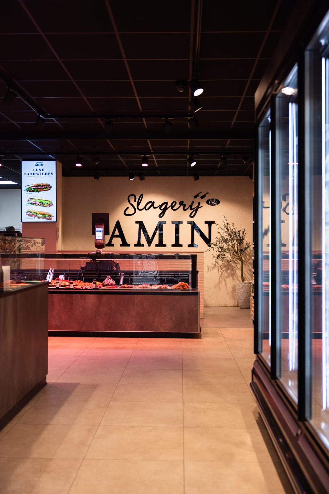 Voor Slagerij Amin realiseerde Emondt een complete verbouwing: van het eerste ontwerp tot de volledige inrichting. De winkel is voorzien van een moderne koeltoonbank en diverse zelfbedieningsmeubels. Niet alleen het vlees en de vleeswaren komen hierin perfect tot hun recht, maar ook de verse groenten, fruit, delicatessen en overige producten krijgen een aantrekkelijke presentatie.