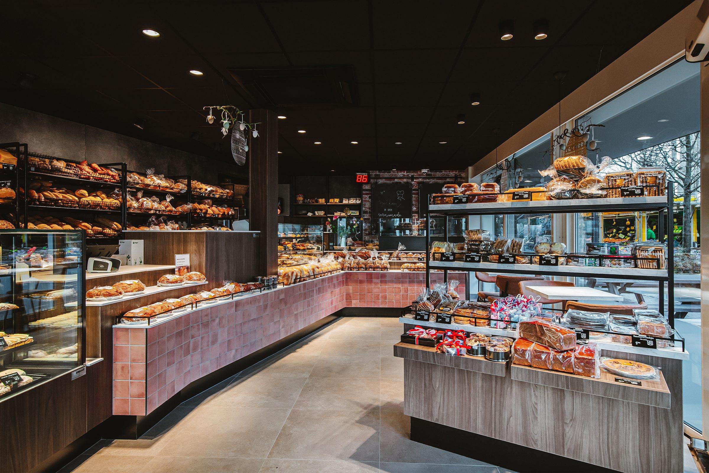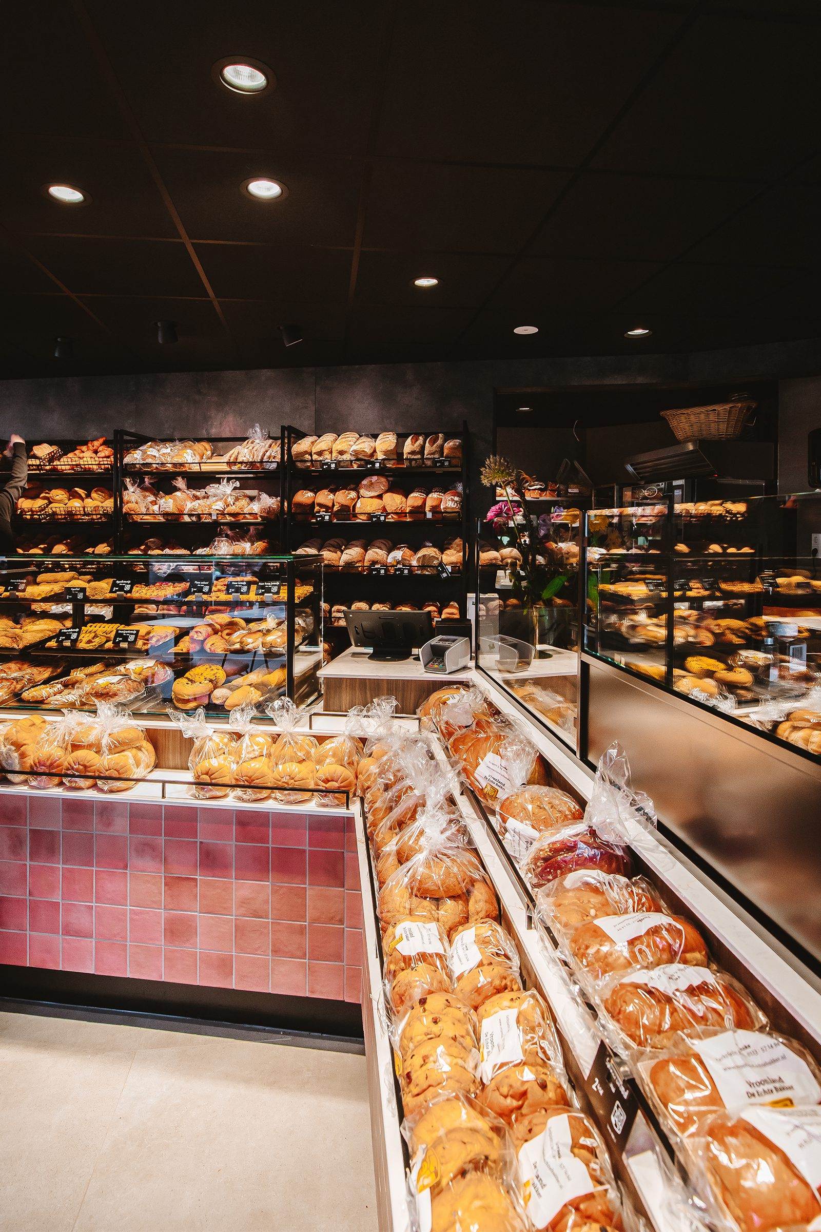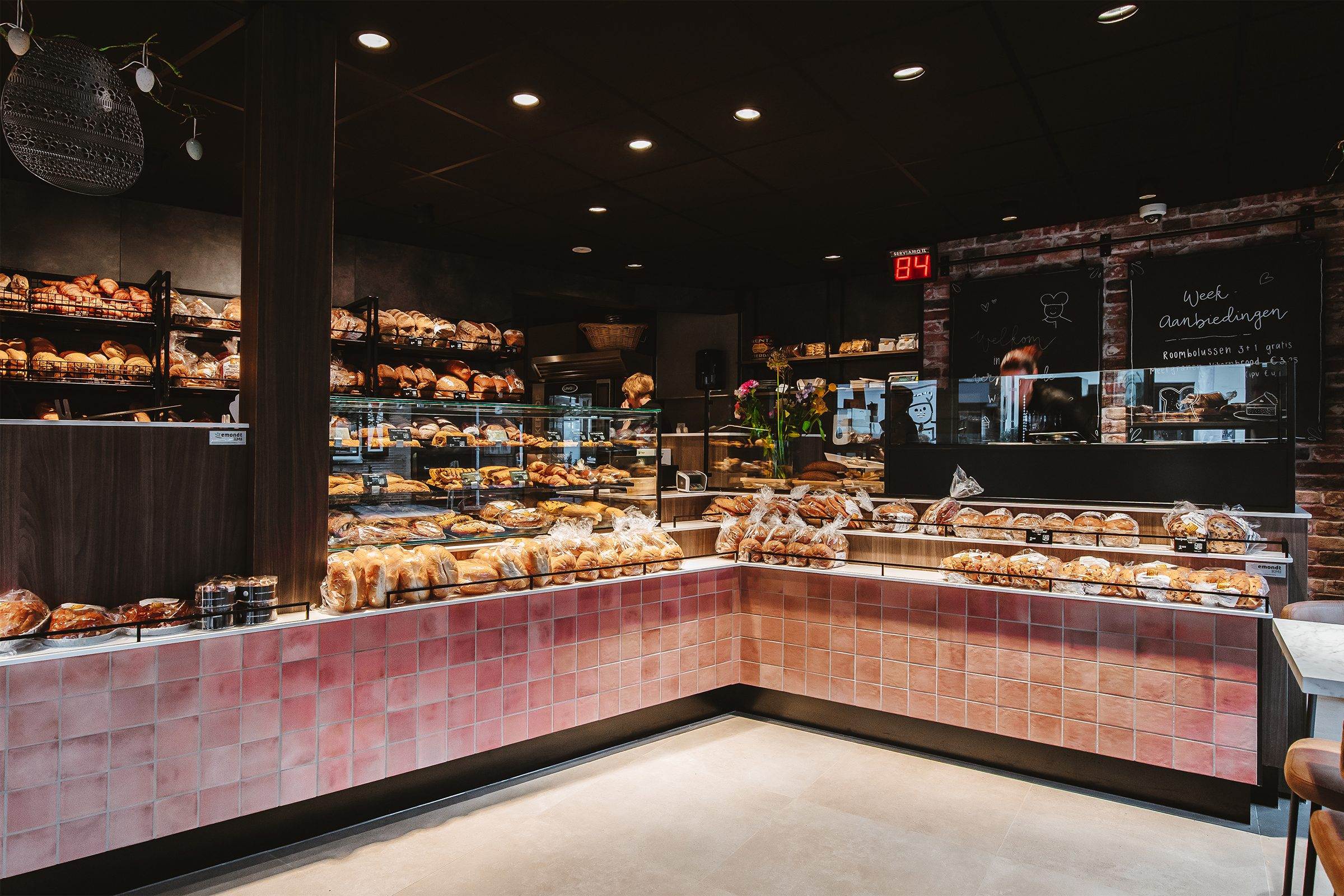 Bij Vroonland, De Echte Bakker hebben wij gekozen voor een unieke aanpak in het ontwerp van de bakkerij. Een opvallend element is het gebruik van Kasba tegels op het front van de toonbank. Deze tegels zijn afkomstig van The Mosaic Factory. Het zorgt voor een organische look en feel die authentiek en elemantair is.
